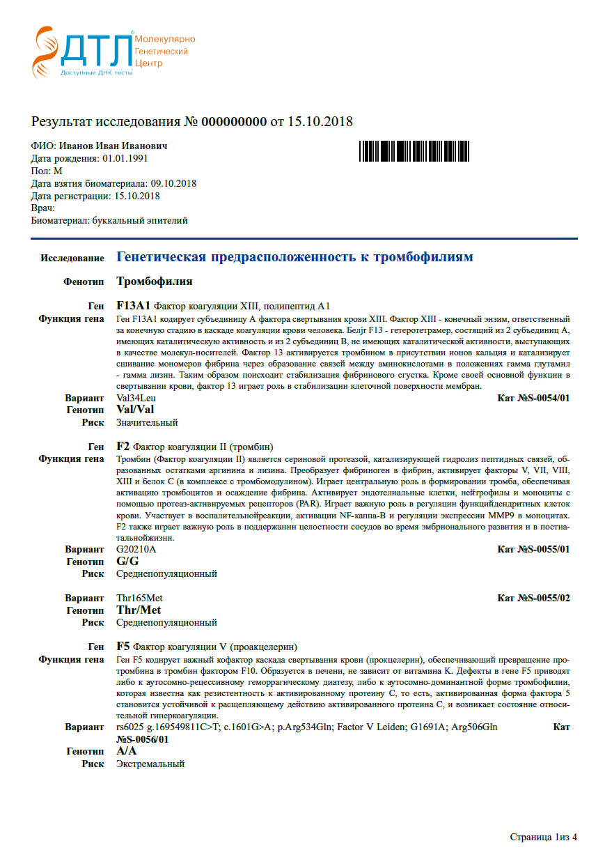Тяжесть патологии зависит от количества обнаруженных генетических маркеров наследственной тромбофилии. Если анализ оказался положительным, необходимо проконсультироваться с врачом-генетиком.